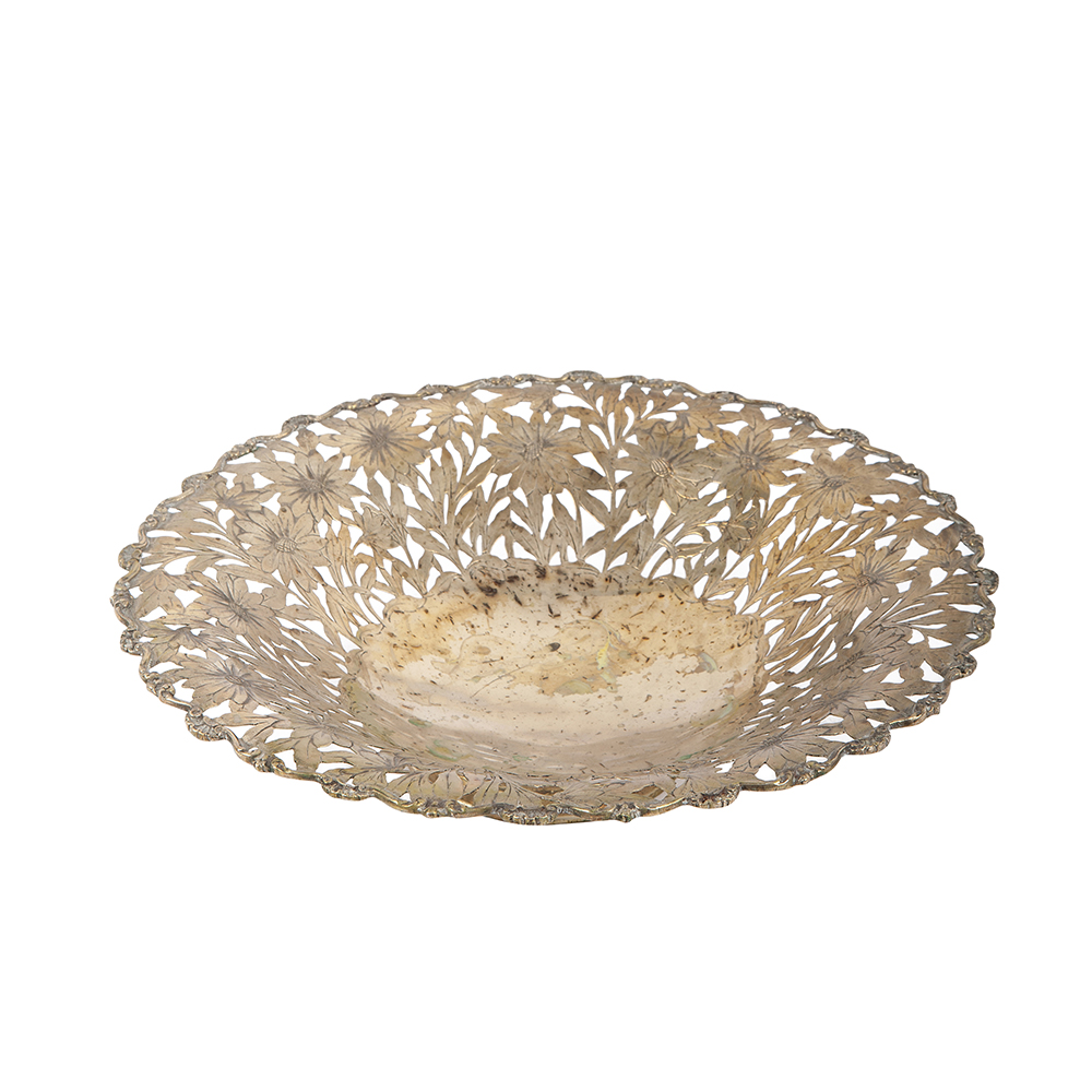 Argento 800 /°°°. Traforocon motivi floreali. Timbro fascio. Peso complessivo: 0,568kg. Dimensione: 7x31x31cm.