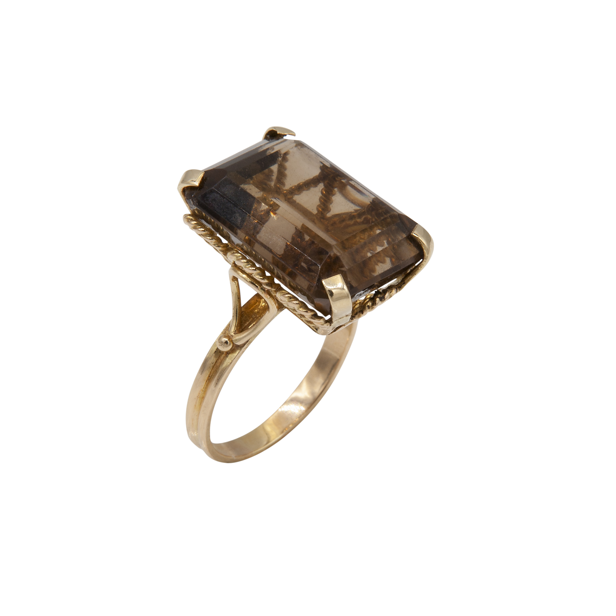 Anello in oro giallo 18 kt con topazio centrale Peso complessivo 9,30 gr.Misura 20