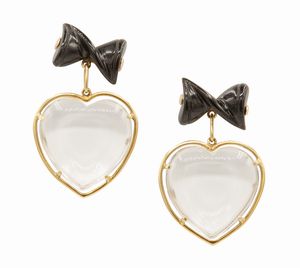 Orecchini in oro 18 kt con cristallo di rocca e onice. Peso complessivo 27,00 gr