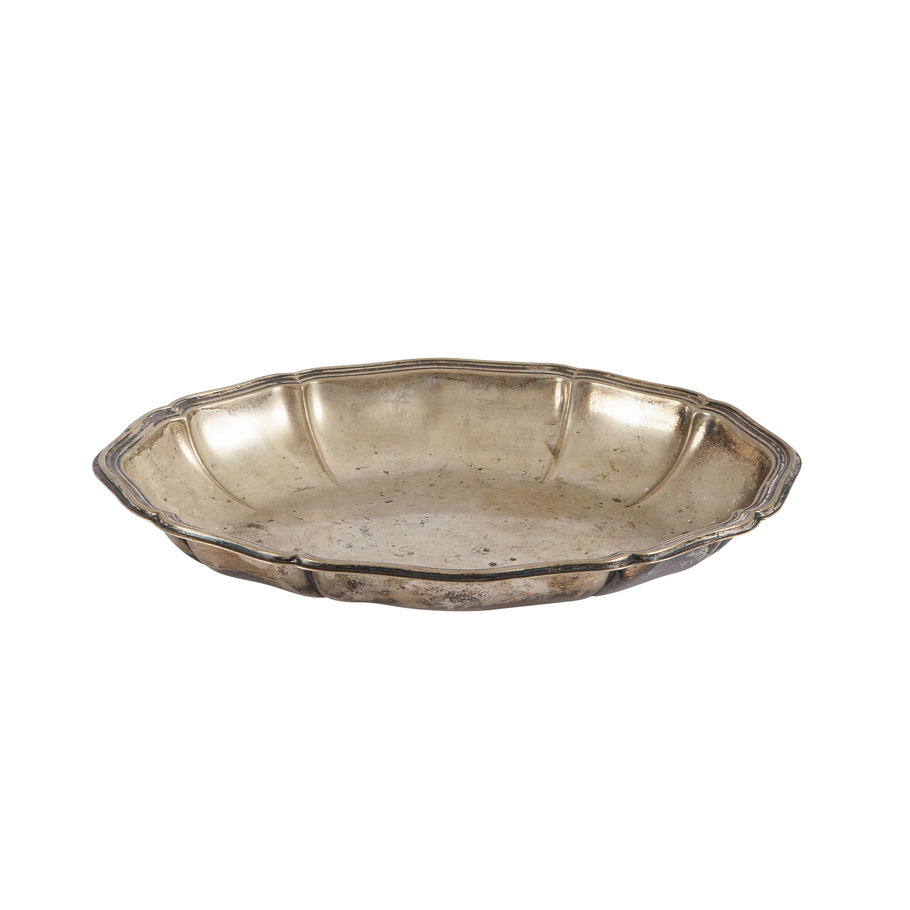 Centrotavola in argento 800/1000 con bordo sagomato. Peso complessivo 460 gr