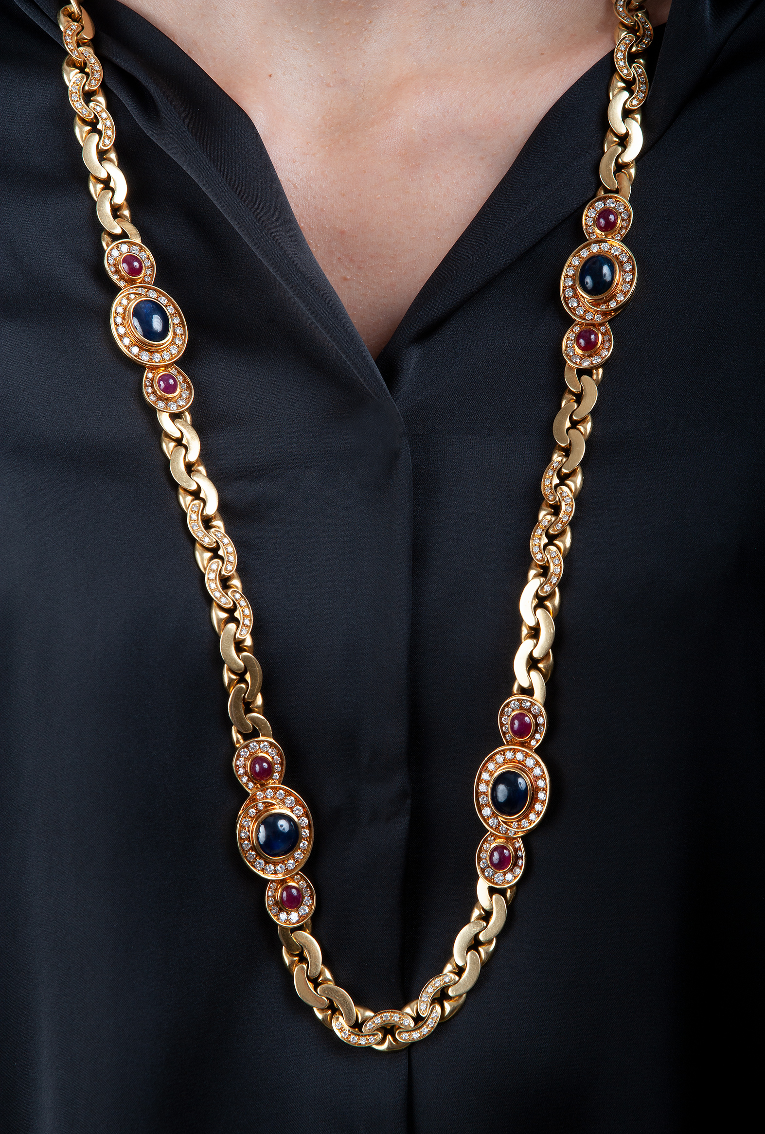 Collana con zaffiri e rubini cabochon