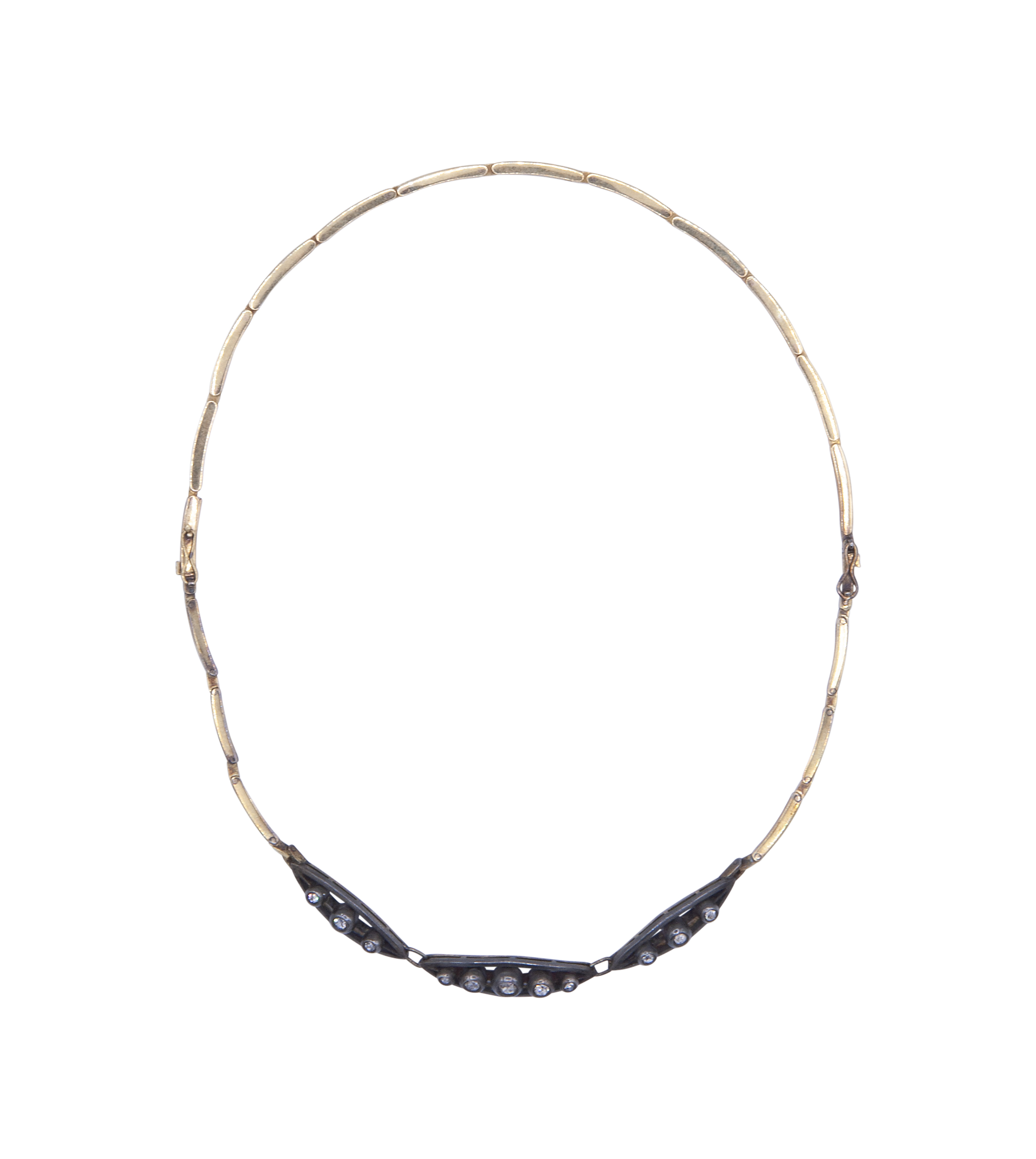 Collana/Bracciale In oro e argento con diamanti. Stile liberty. Peso complessivo 20, 60 gr.