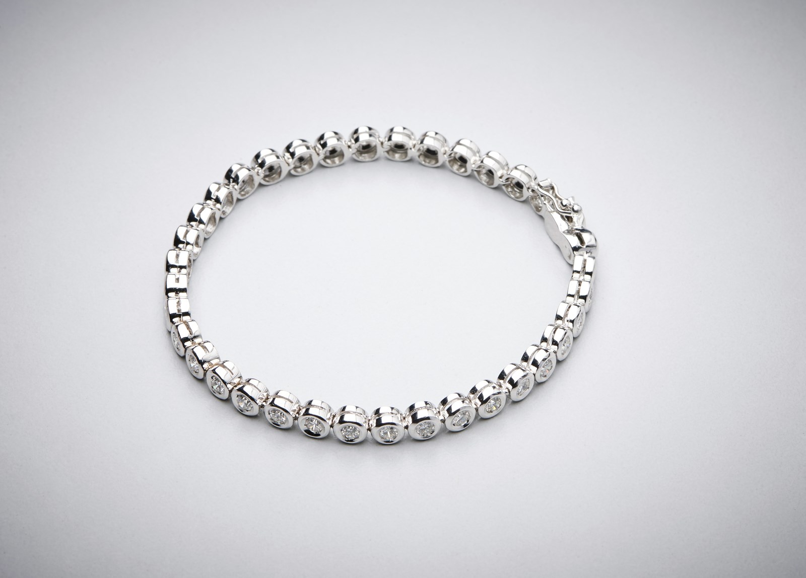 Bracciale in oro bianco750/1000 '' tennis'' con incastri di tipo a ''cipollina'' [..]