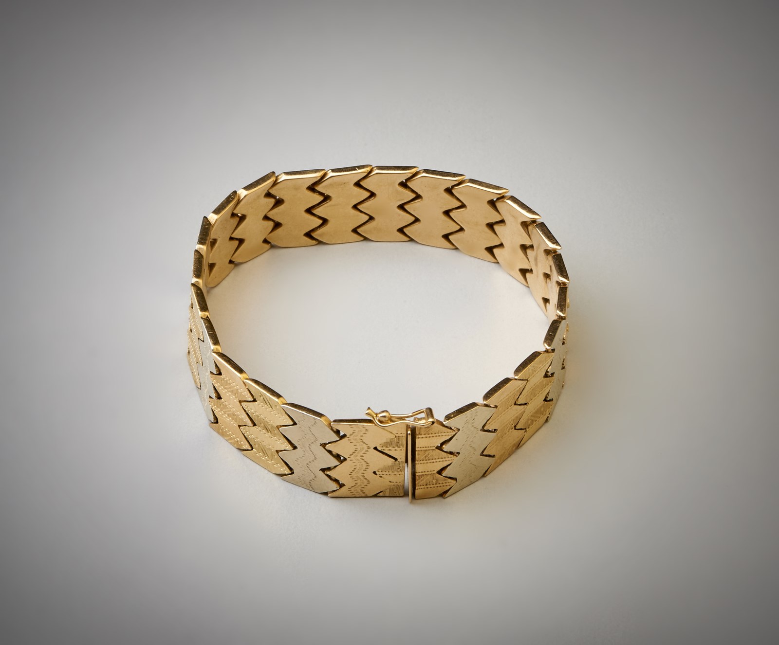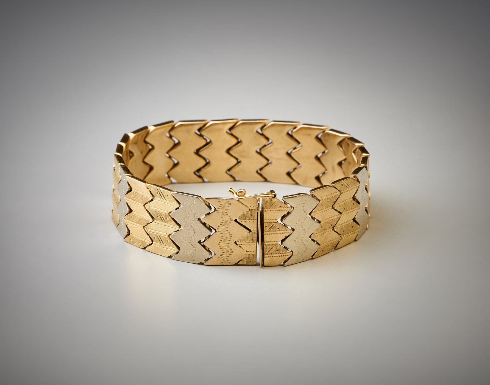 Bracciale semirigido con segmenti geometrici in oro bianco giallo e rosa 750/10 [..]