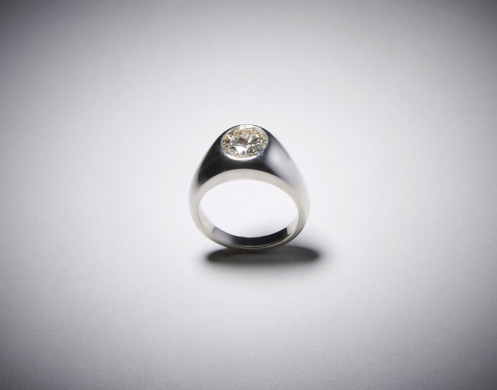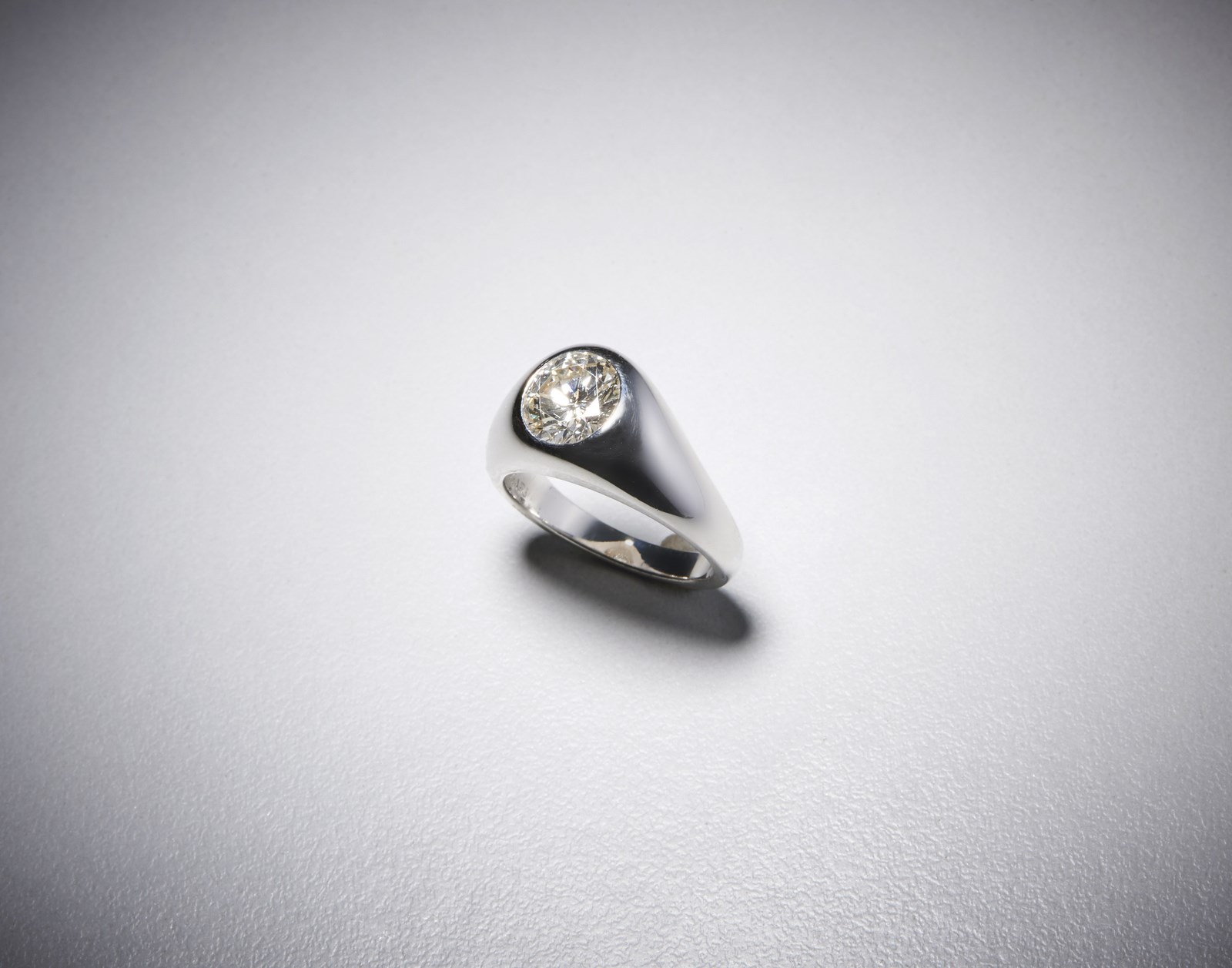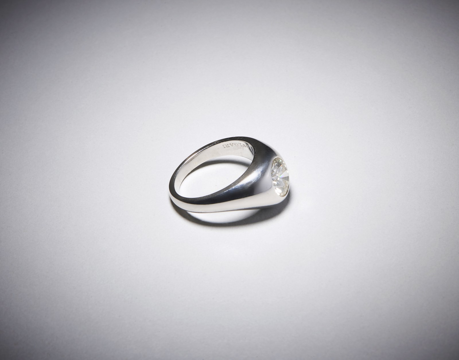 Elegante Anello in oro bianco a trombino firmato '' Bulgari'' con diamante centrale [..]