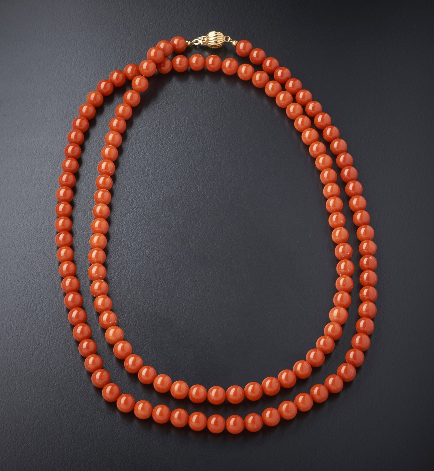 Lungo filo di corallo rosso tipo chanel con chiusura oro 750/1000