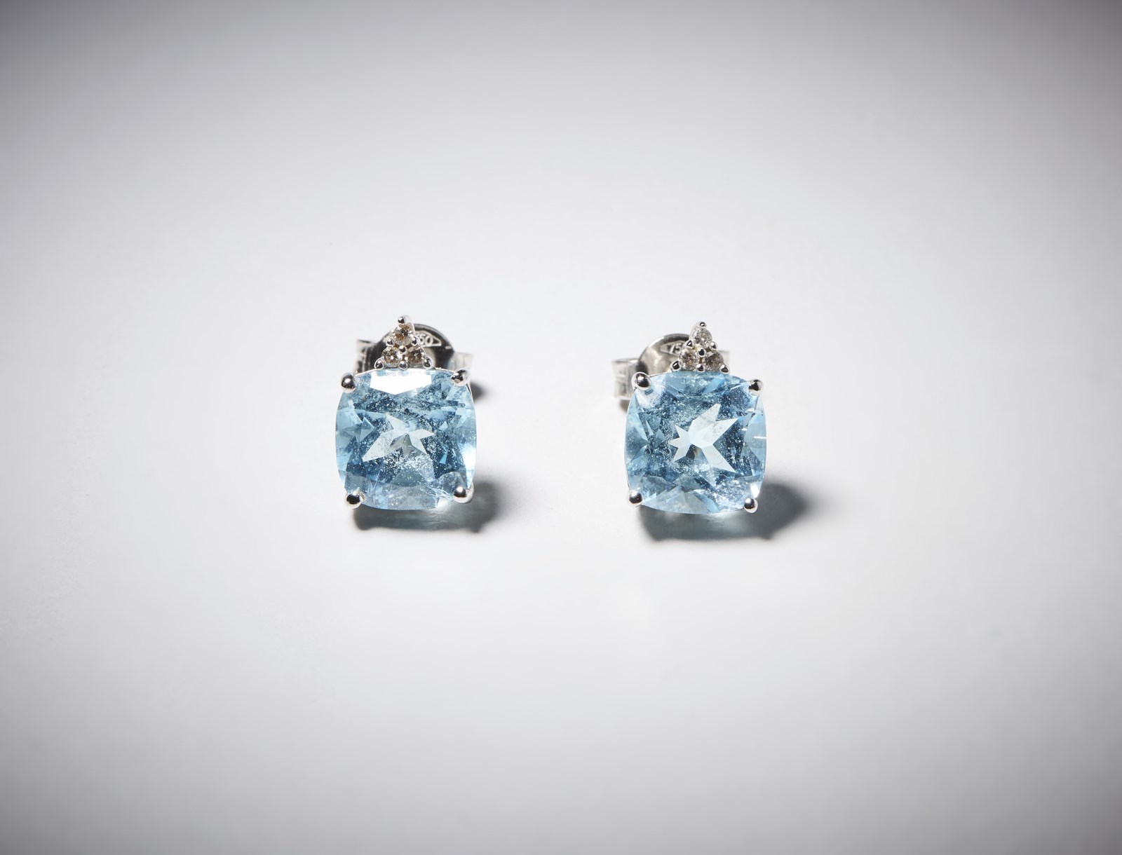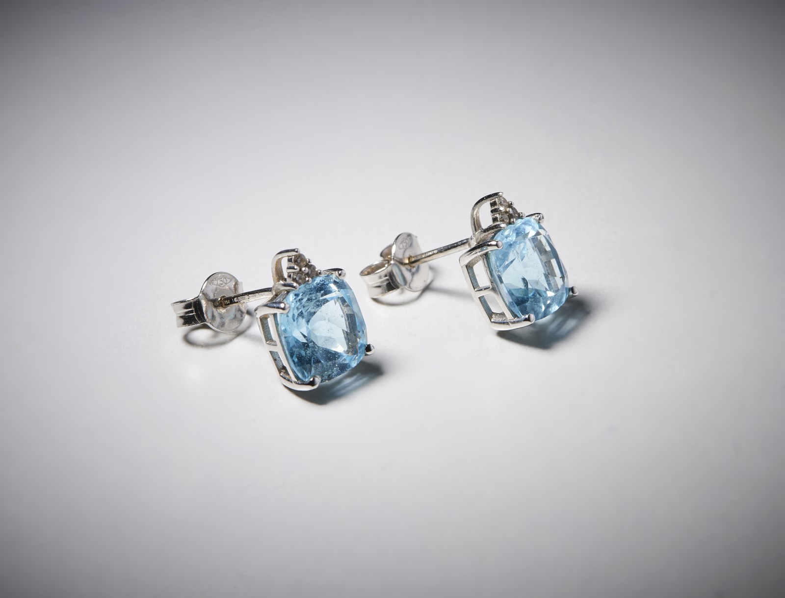 Orecchini in oro bianco 750/100 ''Comete'' con topazi azzurri taglio a cuscino di [..]