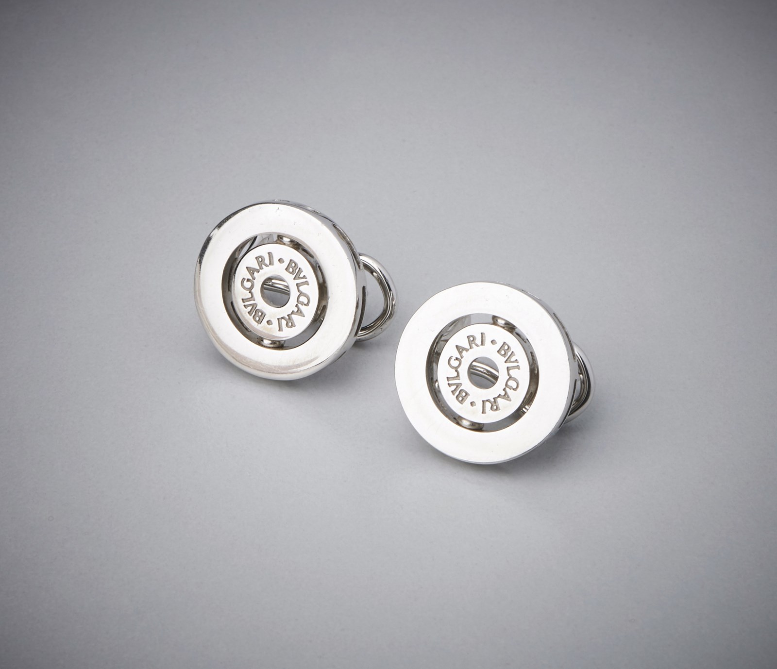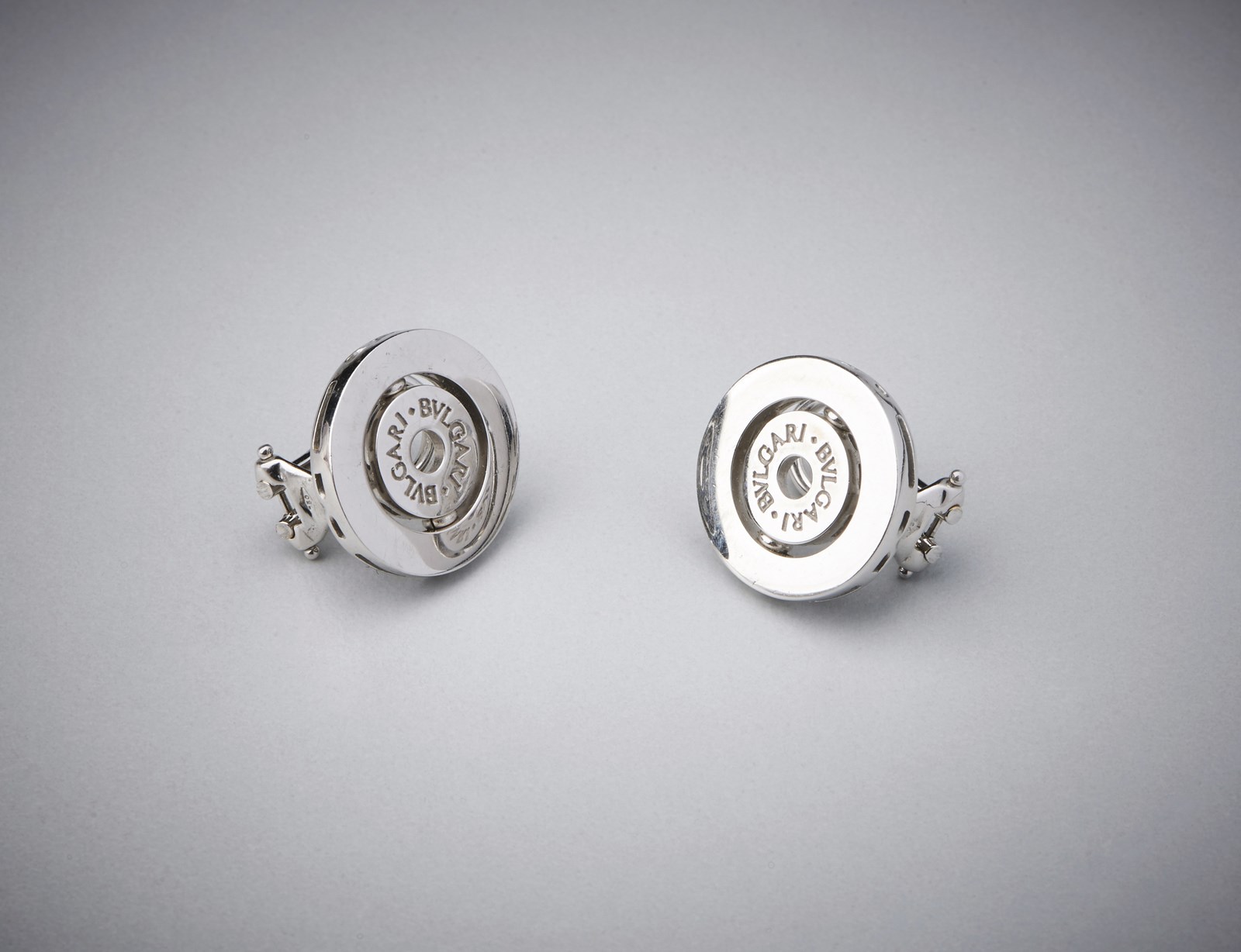 Un paio di orecchini in oro bianco 750/1000 firmati ''Bulgari'' a forma di cerchi [..]