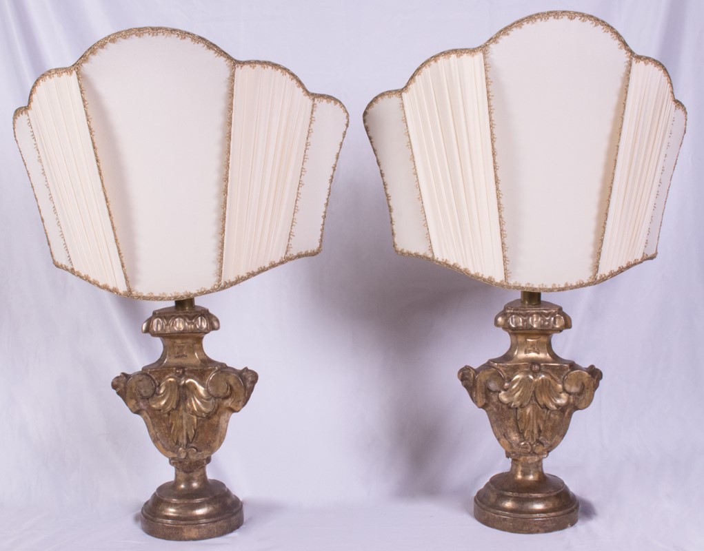 Coppia di torciere da altare in legno intagliato e dorato a mecca