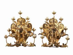 Olio su tela modanata, in cornice mistilinea, cm. 218x110