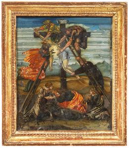 Bassorilievo in bronzo in cornice intagliata e dorata, cm. 19x22 (bassorilievo) e cm. 37x45 (cornice)