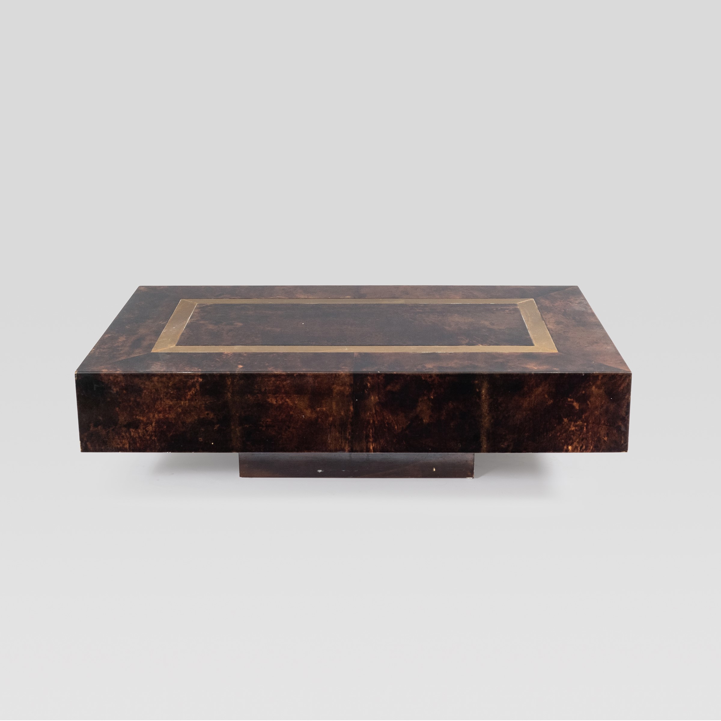 Italia, anni 60 tavolo da salotto in legno, pergamena tinta ed ottone