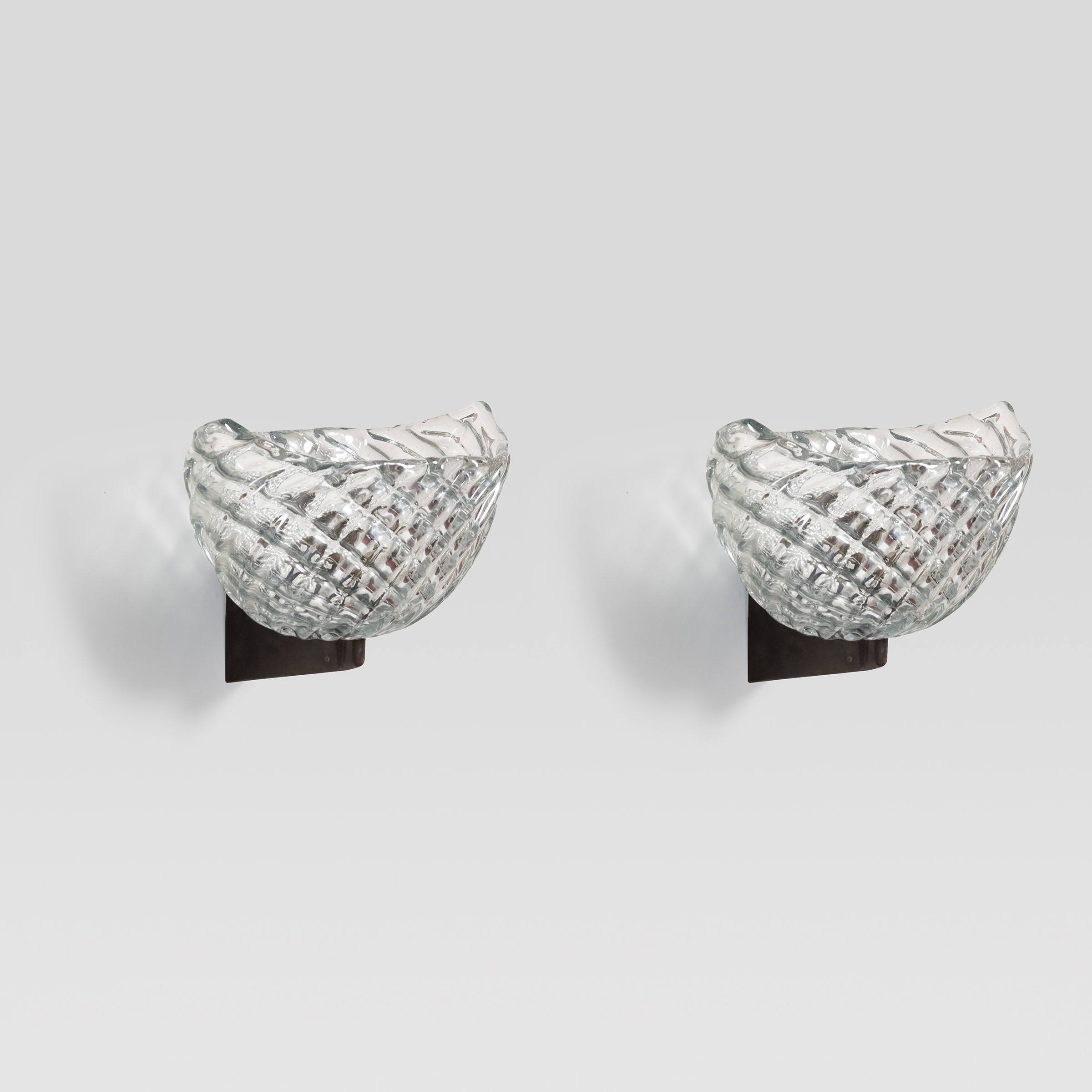 Italia, anni 40 coppia di lampade da parete in vetro ed ottone