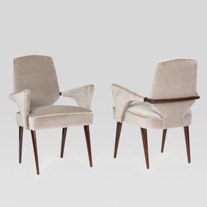 87x60x56 cm. anni 50 coppia di poltroncine in legno e tessuto imbottito