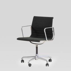 90x56x60 cm. Italia, anni 60-70 sedia da uffucio mod. Aluminium, in alluminio e tessuto nero, etichetta della [..]