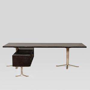 scrivania 76x180x86 cm. - cassettiera 72x46x65 cm. Italia, anni 50 scrivania in legno mod. T22 con cassettiera [..]