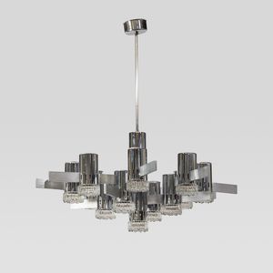 90x86x86 cm. Italia, anni 70 lampada a sospensione in acciaio e vetro