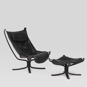 poltrona 80x91x79 cm. - poggiapiedi 59x39x59 cm. Italia, anni 70 poltrona con poggiapiedi mod. Viking 2, legno [..]