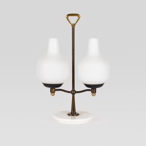 41x28x16 cm. anni 50 lampada da tavolo in marmo, ottone e vetro opalino