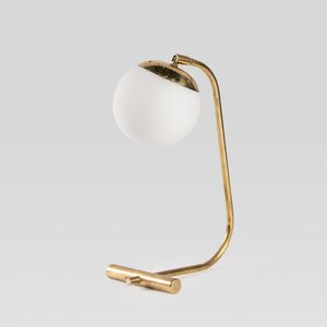 38x15x24 cm. anni 60 lampada da tavolo in ottone e vetro opalino