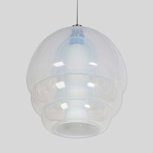 90x46 cm. Italia, anni 60 lampada a sospensione mod. LS 134 in vetro iridescente, vetro lattimo e metallo cro [..]