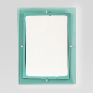 84x63 cm. Italia, anni 60 specchio da parete in vetro verde e vetro specchiato