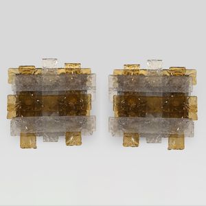 30x30 cm. anni 70 coppia di lampade da parete in vetro colorato ed acciaio