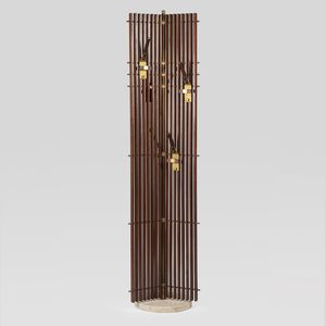 h. 198 cm. Italia, anni 60 appendiabiti girevole in legno, ottone e marmo