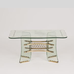 43x90x54 cm. Italia, anni 40-50 tavolino basso in vetro di forte spessore ed ottone