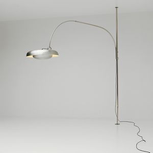 290x210cm. Italia, anni 70 lampada ad arco con struttura in metallo cromato e diffusore in alluminio, altezza [..]