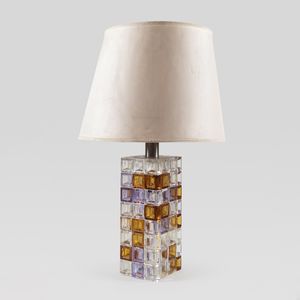 h. 89 cm. Italia, anni 70 lampada da tavolo in vetro policromo, completa di paralume