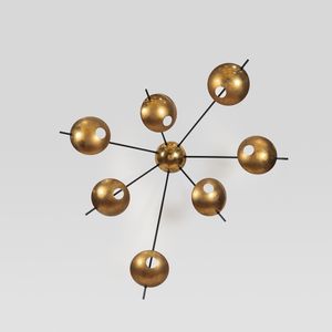 35x100x75 cm. Italia, anni 50 lampada a soffitto o a parete mod. 1036 in ottone e tondino verniciato, etichetta [..]