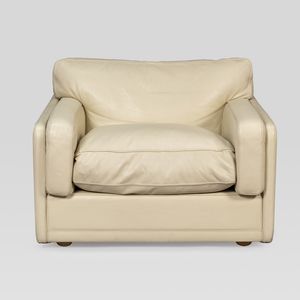 60x100x90 cm. Italia, anni 80-90 poltrona mod. Socrate in legno e pelle imbottita, marchio della produzione, [..]