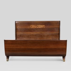101x170x217 cm. Cantù, 1945 circa letto matrimoniale in noce e ottone, schienale con intarsio floreale. Perizia [..]