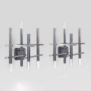 50x39x25 cm. anni 70 coppia di lampade da parete in acciaio e perspex
