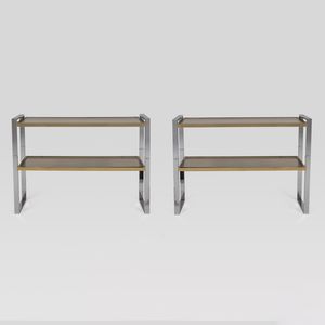 85,5x110x36 cm. anni 70 coppia di consolle in acciaio, ottone e vetro trasparente