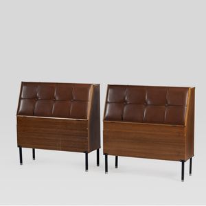 88x85x21 cm. Italia, anni 50 due mobili testiera letto mod. Positano in legno, metallo verniciato, ottone e similpelle, [..]