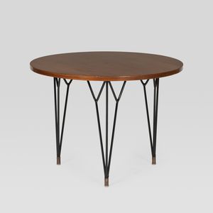 47x65 cm. anni 60 tavolino tondo in legno e ferro verniciato