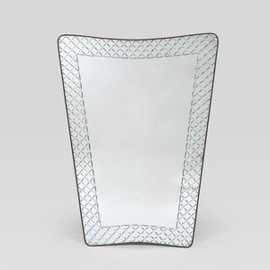 73x65 cm. Italia, anni 50 specchio da parete in legno e vetro specchiato, etichetta della produzione
