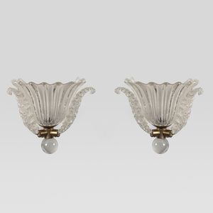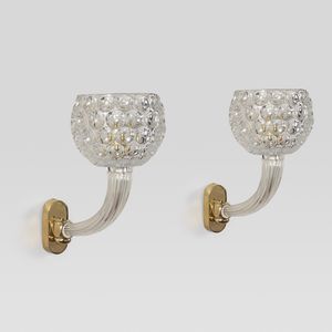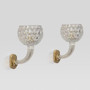 23x23x15 cm. anni 60-70 coppia di lampade da parete in vetro trasparente e ottone