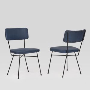 78x47x40 cm. anni 50 coppia di sedie in ferro verniciato e skai imbottito