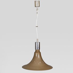 88x40 cm. Italia, anni 70 lampada da soffitto in acciaio e vetro colorato