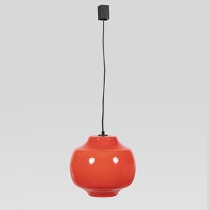 h. 90 cm. anni 60 lampada a sospensione in vetro incamiciato rosso