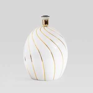 h. 40 cm. anni 70 lampada da tavolo in ceramica smaltata bianca e oro