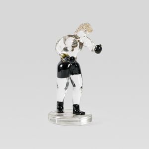 h. 26,5 cm. Murano 1943 scultura in vetro trasparente con foglia d'oro e nero raffigurante Primo Carnera, firmata [..]