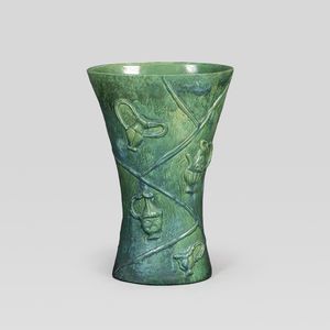 54x38x27 cm. Italia, 1952 portaombrelli mod. C 9 in terraglia forte verde, marchio della produzione, lievi difetti [..]