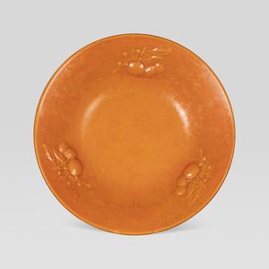 6x30,5 cm. Italia, anni 30 piatto in terraglia forte arancio, marchio della produzione