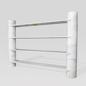 150x228x30 cm. Italia, anni 80 libreria mod. Loico in marmo di Carrara, etichetta della produzione Bibliografia: [..]