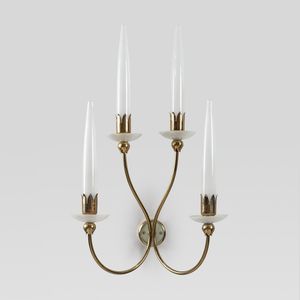 61x36x20 cm. Italia, anni 50-60 lampada da parete in ottone e vetro satinato, marchio della produzione