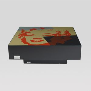 35x91x91 cm. anni 2000 tavolino con serigrafia a colori Golden Marylin 11.44, es. 161/2000, su un lato etichetta [..]